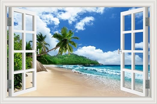 3d Window Decal Wall Sticker Home Decor Exotic Beach View Art