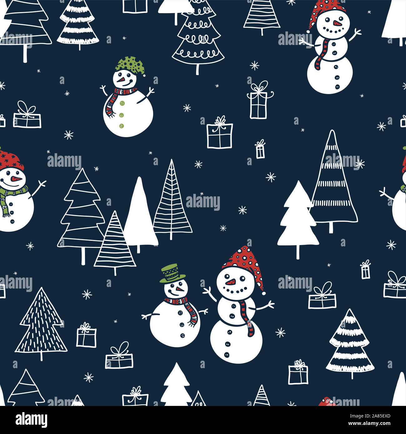 Fun And Cute Hand Drawn Snow Mans Seamless Pattern Winter Themed