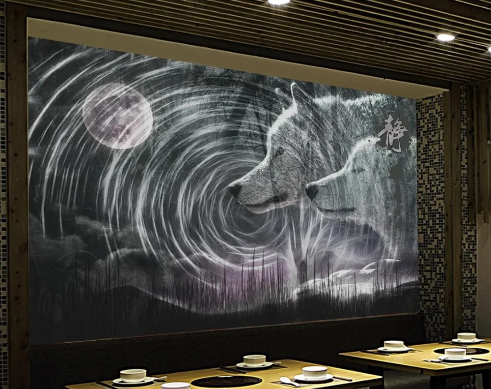 Custom 3d Wallpapers For Wall Moonlight Whirlpool Wolf 3d Wall