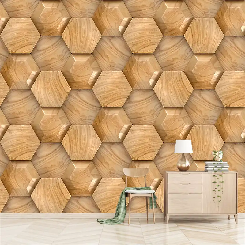 Hexagon Wood Grain Marbles Pattern Wallpaper Custom Wall Mural Art