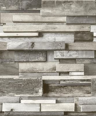 3d Wood Effect Cladding Wallpaper Grey Distressed Plank Board