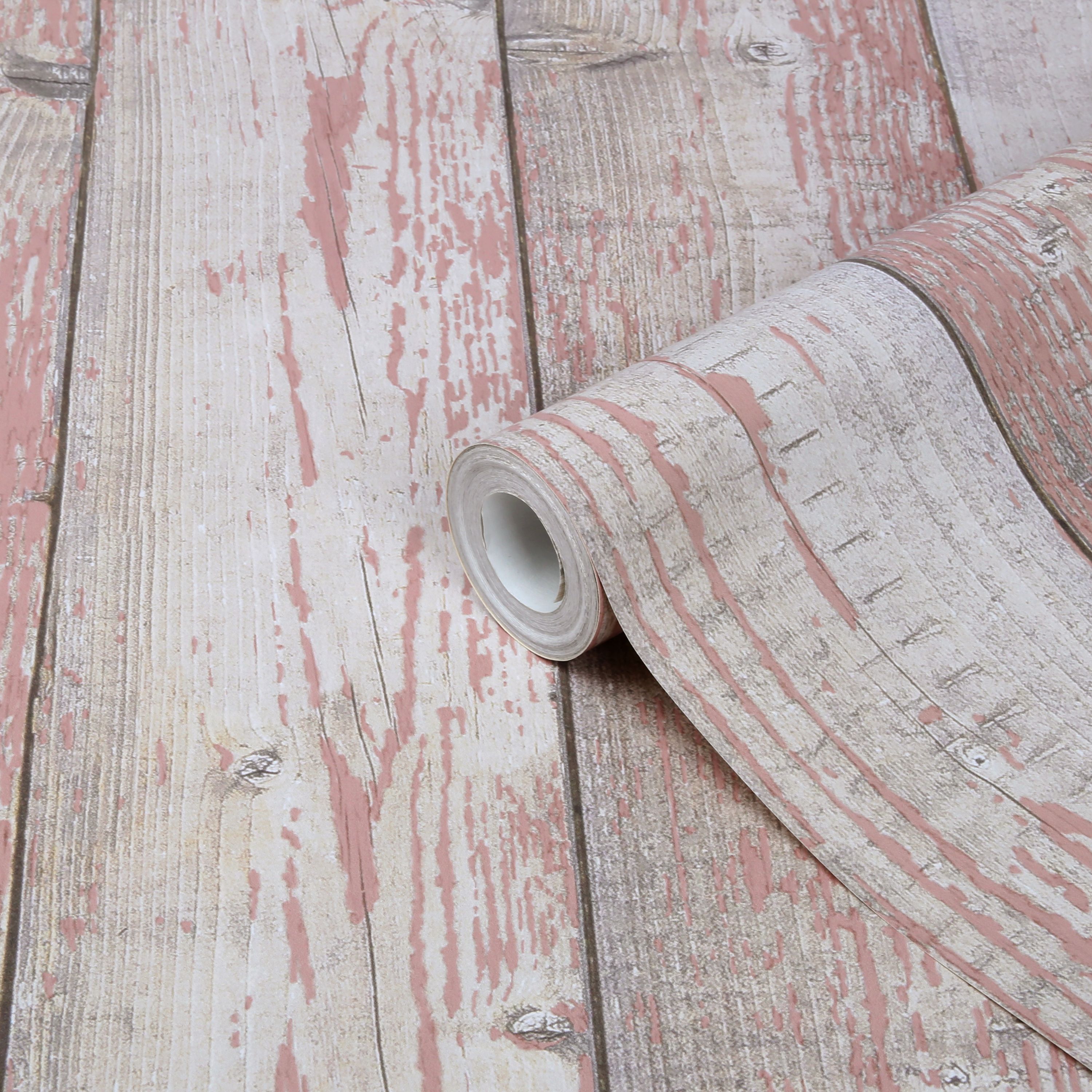 Goodhome Bucy Pink Wood Effect Smooth Wallpaper Departments