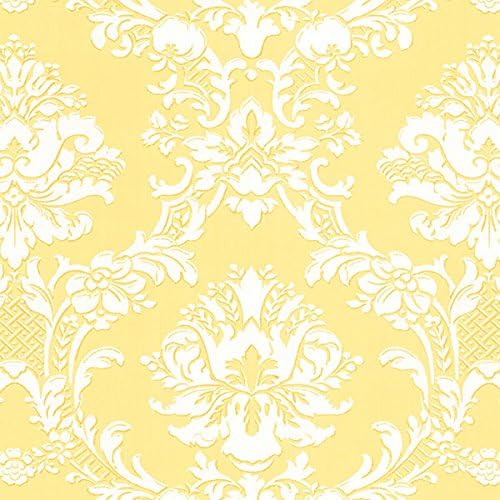 Norwall Sd25650 Document Damask Prepasted Wallpaper Yellow White