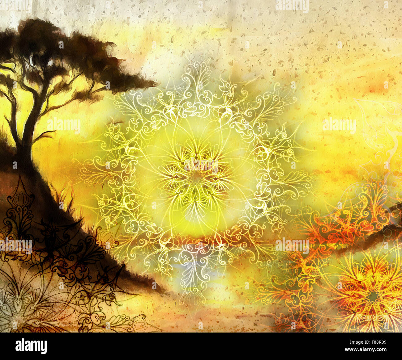 Painting Tree Wallpaper Landscape And Ornamental Mandala
