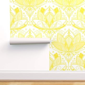 Spoonflower Peel And Stick Removable Wallpaper Lotus Lace Yellow