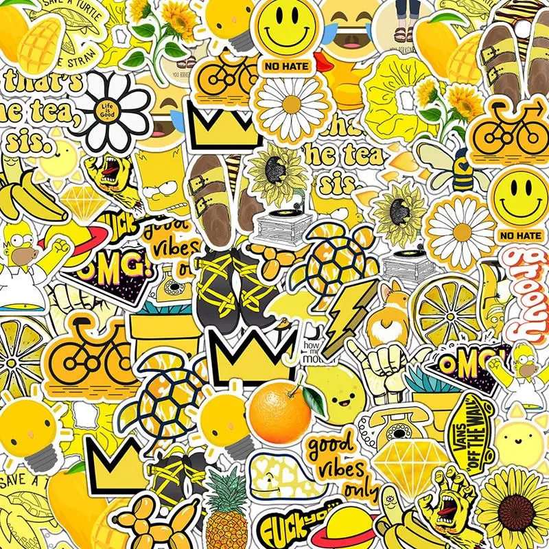 50 Pcs Cartoon Yellow Vsco Stickers For Chidren Toy Waterproof